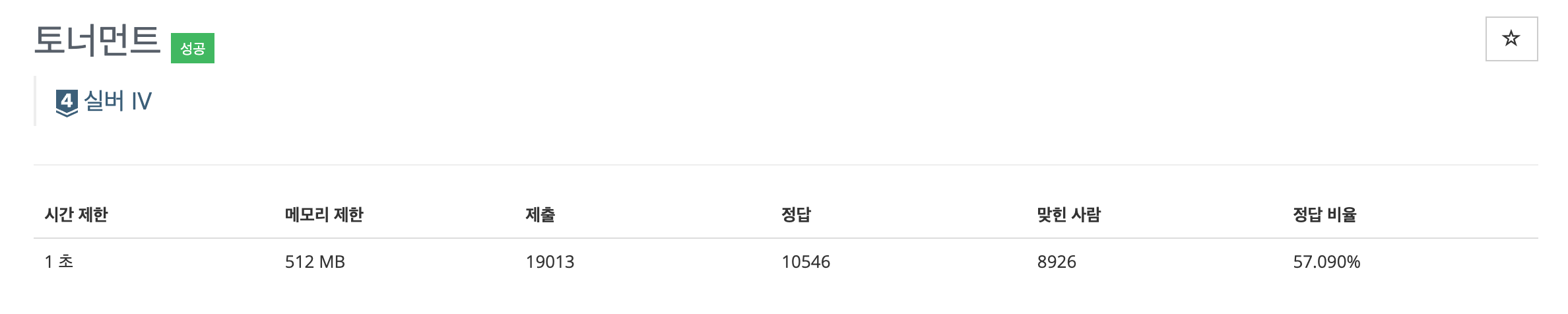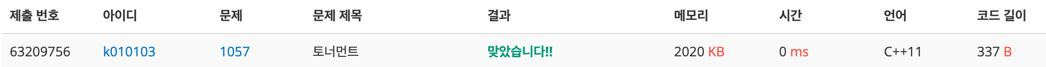 ๋ฌธ์ ์์ ํ ๋๋จผํธ๋ก ๊ฒฝ๊ธฐ๊ฐ ์ด๋ฃจ์ด์ง๊ธฐ๋๋ฌธ์ ๊ฒฝ๊ธฐ์์ ์ด๊ธฐ๋ฉด ๋ค์ ๋ฒํธ๋